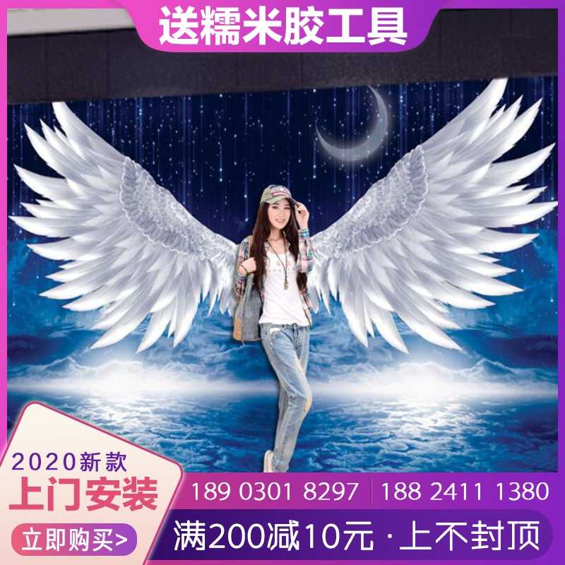 3d立體天使翅膀壁紙直播拍照壁紙健身房網紅甜品奶茶店壁畫